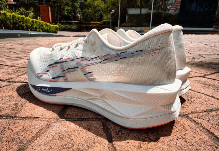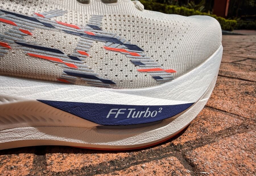 It’s a dual-density midsole with the new FF Turbo Squared on the top and FF Blast Max on the bottom. FF Turbo Squared is an aliphatic TPU but it doesn’t feel like it- it doesn’t have that pleasant squish and fast release of other A-TPUs. FF Leap in the Metaspeed series is also A-TPU but it feels completely different to FF Turbo Squared.
