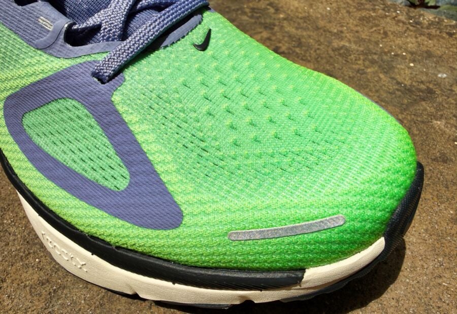 There’s good low light visibility- the large swooshes on the sides are reflective, as are the strips on the sides of the toe box and on the back of the heel counter.