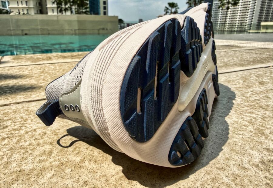 The tongue is semi-gusseted so there’s no tongue slide and there’s a heel pull tab for convenience when putting it on. There are reflective elements on the sides of the toe box and at the back on the heel counter.